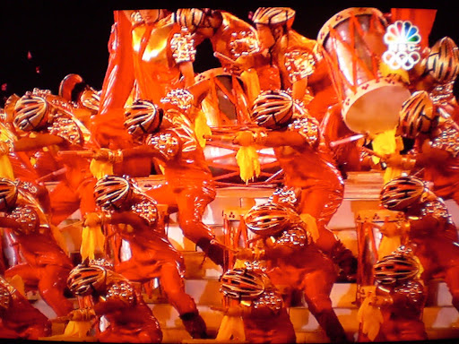 Here’s a question: why are the Chinese drummers wearing bicycle helmets? Is this routine a part of some kind of percussion Ironman, wherein the drummers will go from here to a pool to swim a few miles, and then have to handle a twenty-minute drum solo before jumping on bikes and ride a hundred miles? What’s happening? And why are those men pounding on a giant round of cheese?